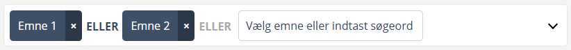 En kombination af flere emner i samme rullemenu vil finde artikler, som indeholder mindst ét af disse emner. F.eks. emne 1 ELLER emne 2.